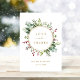 Tack vare detta kort finns färgade vattenfärger eukalyptus, grönt löv, röda bär, gräs grenar och faux guld ram med röd bakgrund på baksidan. Om du vill ha en mer avancerad anpassning av den här designen klickar du på länken Anpassa ytterligare. Matchande objekt är också tillgängliga.