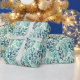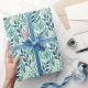 Botaniska gröntens blå löv som omsluter pappra presentpapper