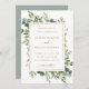 Den här bröllopsinbjudan har färgat eucalyptus greenery, grönt löv och ett faux guld-rektangulärt ram. Om du vill ha en mer avancerad anpassning av den här designen klickar du på länken Anpassa ytterligare. Matchande objekt är också tillgängliga.