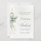 Vackert Spara datumkortet med vattenfärgen eukalyptus och guld löv.