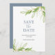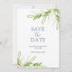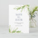 De här inbjudningarna från bröllop spara datum har en överkant och en grund-gräns för vattenfärgsgrej. Orden "Spara datum" är typset i coola grått. Kortet återgår till ett matchande färg. Om du vill se hela temat bröllop går du till www.zazzle.com/dotellabelle Original water color grönt foliage art and design by Victoria Grigaliunas. Om du vill ha mer information kan du läsa mer.