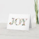 Julkortet har ord Joy som är skrivet i ett enkelt, sofistikerat, vackert botaniskt inslag på en ren vit bakgrund. Anpassa hälsning inåt för att skicka ett personlig till vänner och familj.