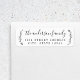 Anpassningsbar-designade returetiketter som har personlig familj namn i modern -kalligrafi med elegant botaniskt inslag för krans. Anpassa till namn, adress och ditt val av bakgrund till färg. Lämpligt för meddelanden, inbjudningar, kort, brev m.m.!