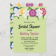Denna elegant blommigt är inbjudningskort för möhippan en perfekt för en modern möhippa för blommigten sommaren. Den romantiska designen har blått, gult, lila och burgudisk ro med elegant svart typografi på en sage grönt bakgrund.