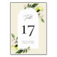 Elegant botaniska citroner, löv och blommar från ram, bordsnummer kort. Vid beställning av bordsnummer-kort måste varje kort numreras och beställas individuellt.