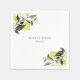 Elegant botaniska citroner, löv och blommar, personlig pappra blöjor. I den moderna designmallen stil finns linjer för namn och datum.