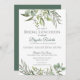 Vattentärsfärgad grönträdgårdsluncheon med ett botaniskt möhippa. Elegant boho chic vattenfärgsfärgad möhippa inbjuder känsliga skissade löv i grått av varm muterad neutralt och grönt för att bruden ska vara.
