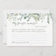 Fira din möhippa i stil med vårt botaniska "Mina favoritminnen med bridekortet". Den här designen har vattenfärgseukalyptus och grönt med modern skripttypografi, en elegant som läggs till i möhippan eller möhippan.
