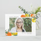 Meddela om din examenståling stora prestation med en fräsch twist! Detta anpassningsbara fotograferingskort för examen har en livfull akvarelldesign med citroner och apelsiner som ger en glad och solig stämning till din examenskandidats stora ögonblick. Anpassa detta examensmeddelande med ditt favoritfoto, examenstålingens namn, examensinfon och alla andra speciella meddelanden du vill dela. Oavsett om du firar ett tropiskt tema eller bara älskar den ljusa citrusdesignen är detta meddelande det perfekta sättet att dela nyheten med vänner och familj på ett roligt och minnesvärt sätt!