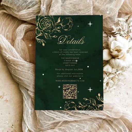 Botaniska rosor Grönt Guld Kungligt bröllop Tack Kort