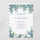 Den kvinnliga och eleganta studentfestinbjudan med dekorativa blått som är botaniska på bekläda och nätt blått, pricker på baksidaen.