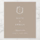 Monogram för botanisk Vapensköld, bröllop flaska. Vintagen inspirerade vapenskölden med botaniskt grenar. Kännetecken, vit typografi på mousserande vin beige bakgrund.