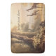 Vintagens botaniska målning av tre giraffer vid en flod i djungeln under solnedgången