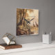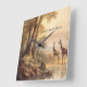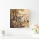 Vintagens botaniska målning av tre giraffer vid en flod i djungeln under solnedgången