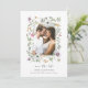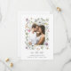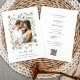 De här vita bröllop spara datum-korten har ett ram med illustrerad, färgstark rosa, orange, lila och vita vilda blommor och grönt löv som omger ditt personliga foto, på vit bakgrund. På baksidan av kortet finns det utrymme för mer information om bröllop, plus en skannerbar QR-kod som tar gästerna direkt till bröllop webbplats. En enkel design som är både bål och elegant.