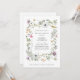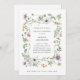 Dessa vita inbjudningskort för möhippa har ett ram med illustrerad, färglös rosa, orange, lila och vita vilda blommor och grönt löv på vit bakgrund. En enkel möhippa som är både boho och elegant.