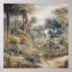 vintage botanisk målning av zebröder nära en flod i en oas omgiven av handflatan träd