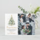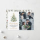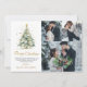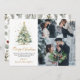Modern botanisk Elegant för flytande kollisioner Skriptet Watercolor Julgran 3 Photo Collage julkort. Det här fina, enkla, minimalistiska Helgdagskortet med flera fotojular har söt tre (3) rasterfotokollage, vattenfärgen julgran med dekoration guld bollar och konetti, en "God jul" hälsning som är skriven i en fin slitstil svan teckensnitt i guld och vitt. På baksidan av vattenfärgen vinter botaniskt bladgrej, bär, eukalyptus löv, gräs nål och grenar. Den här festliga Anpassningsbarna Fotojulkort är ett underbart sätt att påminna de kära om att du tänker på dem den här vinterJulhelgen.