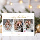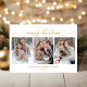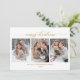Modern botanisk kalligrafi i vinter Elegant 3 Photo Collage julkort. Den här snygga, enkla, minimalistiska multifoto-christmas-korten har söt tre (3) rasterfotokollage, en "God jul" hälsning-text som är skriven i en snygg, kursiv stil i guld och vitt. På den omvända vattenfärgen vinter botaniskt grönt blad, bär, eukalyptus löv, gräs nål och grenar. Den här festliga Anpassningsbarna Fotojulkort är ett underbart sätt att påminna de kära om att du tänker på dem den här vinterJulhelgen.
