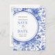 Botaniskt Blått Chinoiserie Bröllop Spara Datum Meddelande Vykort