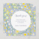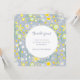 Modern gult, grönt och vit botanisk vild blomma mönster på en blek blå bakgrund för en ny sommarkänsla. Ett fantastiskt passande kort för att tacka dina gäster i bröllop för en underbar dag.