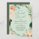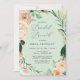 Vackra brunchinbjudningar med möhippa som innehåller en elegant modern neutralt pastellfärgad botanisk blommigt grön ram i mjuka jordtoner av persika, orange, mjuk , och mängder av grönt från sage grönt till ljusa och djupare gröntar. Din personlig visas i en förhöjd typografiklayout som placerar hedersgästen framför och mitt.