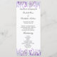 Ett härligt botaniskt bröllopsprogram-kort för lavender blommigt. Lägg till ordningen för ceremonin och namnen på framsidan. På baksidan finns det utrymme för Brudens sida namn.