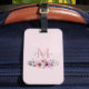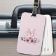 Botaniskt chic blommig elegant grönska grå rosa blomma monogram bagageetikett