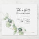 Anpassa vår moderna etikettmall för bröllop-bläckblad för eukalyptus-löv för din bröllopsfest med alla dina gäster. Med en minimalistisk utformning med vattenfärgat grönt löv. Perfekt för andra speciella händelser som bröllop-repetitionsinbjudningar, bröllopsmottagningar och duschar, och mycket mer.