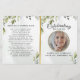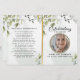 Anpassa det här moderna begravningsprogrammet för elegant med eget foto och egen text för att skapa en speciell hyllning till ditt barn. Ett 'In Loving Memory'-program med Blommigt Foliage botanical and guld accent Memorial Program. På framsidan finns ett foto av din älskade, deras namn, data, minnesplatsen och evenemangets datum. På insidan finns en obituär serviceordning, och på baksidan finns ett tackkort, och på butikens plats finns också andra konstruktioner som erbjuder botaniskt grönt med ro och löv design och glitter/gyllene accents och Eucalyptus foliage för att uppfylla alla krav.