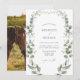 Öka bröllop med den enkla Eleganten Botaniska fotoinbjudan till Bröllop, en tidlös sammanslagning av en verdant vattenfärgsträdgård och en raffinerad sofistikering av blommigten. Den här moderna klassiska designen har ett känsligt botaniskt inslag av intertwining-eukalyptus och grumliga vita blommigtar, vilket framkallar naturens romantik under varje säsong - vår, sommar, fall eller vinter. Med en konstfull balans av formell lyx och karm, blandar denna unika men traditionella estetiska kalligrafi med vintagens elegans, skapar den perfekt för par att söka en romantisk, tidlös beröring. Oavsett om du har en skogsinspirerad smaragdpalett eller en neutralt, minimalistisk grönt, kompletterar den här mångsidiga designen alla bröllop-teman, från avslappnad och enkel till formell och polerad. Den här samlingen är designad för att skapa en sömlös och sammanhängande bröllop-upplevelse med en rad samordnande produkter och erbjuder ett smidigt chic och prisvärt sätt att förverkliga din vision. Låt Eleganten Botanical Bröllop Collection bli perfektens bakgrund för din unika kärlek-historia. Som med alla våra produkter, om ni har några frågor om utformningen av eller speciella förfrågningar om samordning av produkter, så låt oss få veta det!