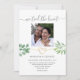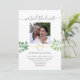 Fira er för evigt med denna eleganta botaniska bröllopsinbjudan. Med en specialdesignad bild på det nygifta paret, delikat vattenfärggrönska och ett romantiskt guldkardelshjärta är denna design perfekt för efterbröllopsfirande, destinationbröllop eller intima tillställningar. Den moderna layouten med klassisk skrivstil och seriffer ger charm och värme till er speciella inbjudan. Helt anpassningsbar med namn, evenemangsinformation och plats.