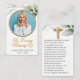 Fullständigt anpassat Prayer-kort med dekorativt kor på baksidan och de böneverser som du kan anpassa. Föräldrarkortet levereras med ett foto för anpassade och personlig och med personlig namn och datum för begravningen. Utformningen har ett skript och en handskrift/kalligrafi i stil tillsammans med elegant och klassi typsnitt.