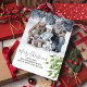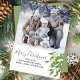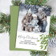 Den här utformningen har ett God jul-ett-fotokort, med ett enkelt, minimalistiskt, botaniskt grönt, mistletodesign, en klassisk elegant, minimal, lövning löv stil, en helgdag-typografi stil.