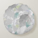 Botaniskt grått, löv,vitt och grått, turkos rund kudde