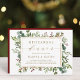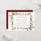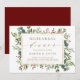 Denna inbjudan till repetitionsmiddag har målad akvarell eukalyptus, gröna blad, röda bär, tallgrenar och en falsk guld rektangulär ram med stilig kalligrafi. För mer avancerad anpassning av denna design, klicka på "Anpassa ytterligare"-länken. Matchande artiklar finns också tillgängliga.