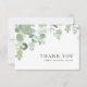 Tack för ditt kort. Med botanisk grönt löv med ett tackbudskap på baksidan. Du kan ändra färg för text och bakgrund.