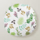 Botaniskt grönt vattenfärgstag Rund fyllning Kudde