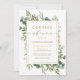 Denna bröllopsduschinbjudan för bruden har målad akvarell eukalyptusgrönska, gröna blad med en gyllene rektangulär ram. För mer avancerad anpassning av denna design, klicka på "Anpassa ytterligare"-länken. Matchande artiklar finns också tillgängliga.