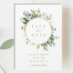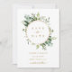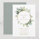 Denna bröllopsinbjudan har målad akvarell eukalyptusgrönska, gröna blad och en guldcirkelram. För mer avancerad anpassning av denna design, vänligen klicka på "Anpassa ytterligare"-länken. Matchande artiklar finns också tillgängliga.