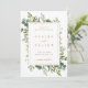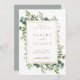Denna bröllopsinbjudan för att spara datumet har målad akvarell eukalyptusgrönska, gröna blad och en gyllene rektangulär ram. För mer avancerad anpassning av denna design, klicka på "Anpassa ytterligare". Matchande artiklar finns också tillgängliga.