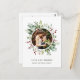 Botaniskt julgrönt bröllopsfoto tack vykort