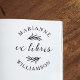 Botaniskt Löv Runda Namn Ex Libris Bookplate Self-Inking Frimärke. Med en rund serif-typografi som visar ditt namn med "ex libris" i mitten som dekoreras med handdragna löv.