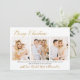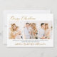 Modern kalligrafi Skript Vinterbotaniska Eleganten 3 Photo Collage-julkort. Den här snygga, enkla, minimalistiska multifoto-christmas-korten har söt tre (3) rasterfotokollage, en "God jul" hälsning-text som är skriven i en snygg, kursiv stil i guld och vitt. På den omvända vattenfärgen vintern, botaniskt grönaktigt blad, bär, eukalyptus löv, gräs nål och grenar. Den här festliga Anpassningsbarna Fotojulkort är ett underbart sätt att påminna de kära om att du tänker på dem den här vinterJulhelgen.