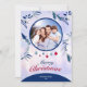 Glada högtider! Fånga julens magi med detta vackra botaniska blomsterkort. Det har en fantastisk blandning av marinblått och himmelblått, med ömtåliga blommor som får ditt hjärta att sjunga. Låt ditt familjefoto lysa på detta eleganta kort. Det är som en liten bit julmagi du kan hålla i handen. Beställ ditt idag och sprid glädjen!