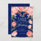 Botaniskt Mörk blått och korallblomma Spara Datumet