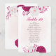 romantisk fuchsia och vita blommor, botaniskt platskort för bordsnummer. Uppgifterna om glitter simuleras.