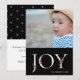 Vinter botaniska grenar, kvistar och bär, prydd "GLÄDJE", i svart och vitt, platt julkort foto.