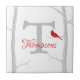 Botaniskt rödkardinalfåglar Träd Monogram Namn Kakelplatta