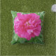 Dekordekorera utomhus med botaniska kuddar. Den här sommarens blommigt har en rosa peony med lush grönt lövs.